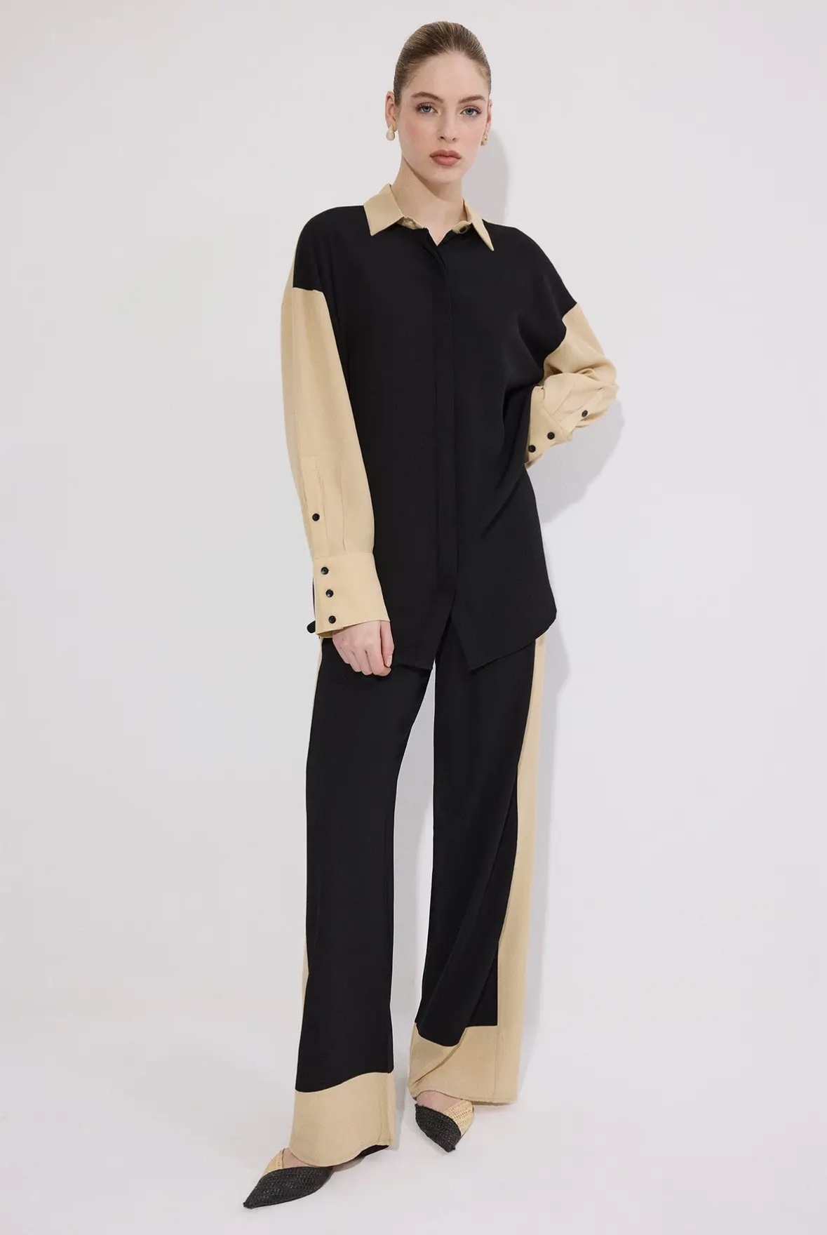 Black Shimmer Detail Two Piece Pants Set