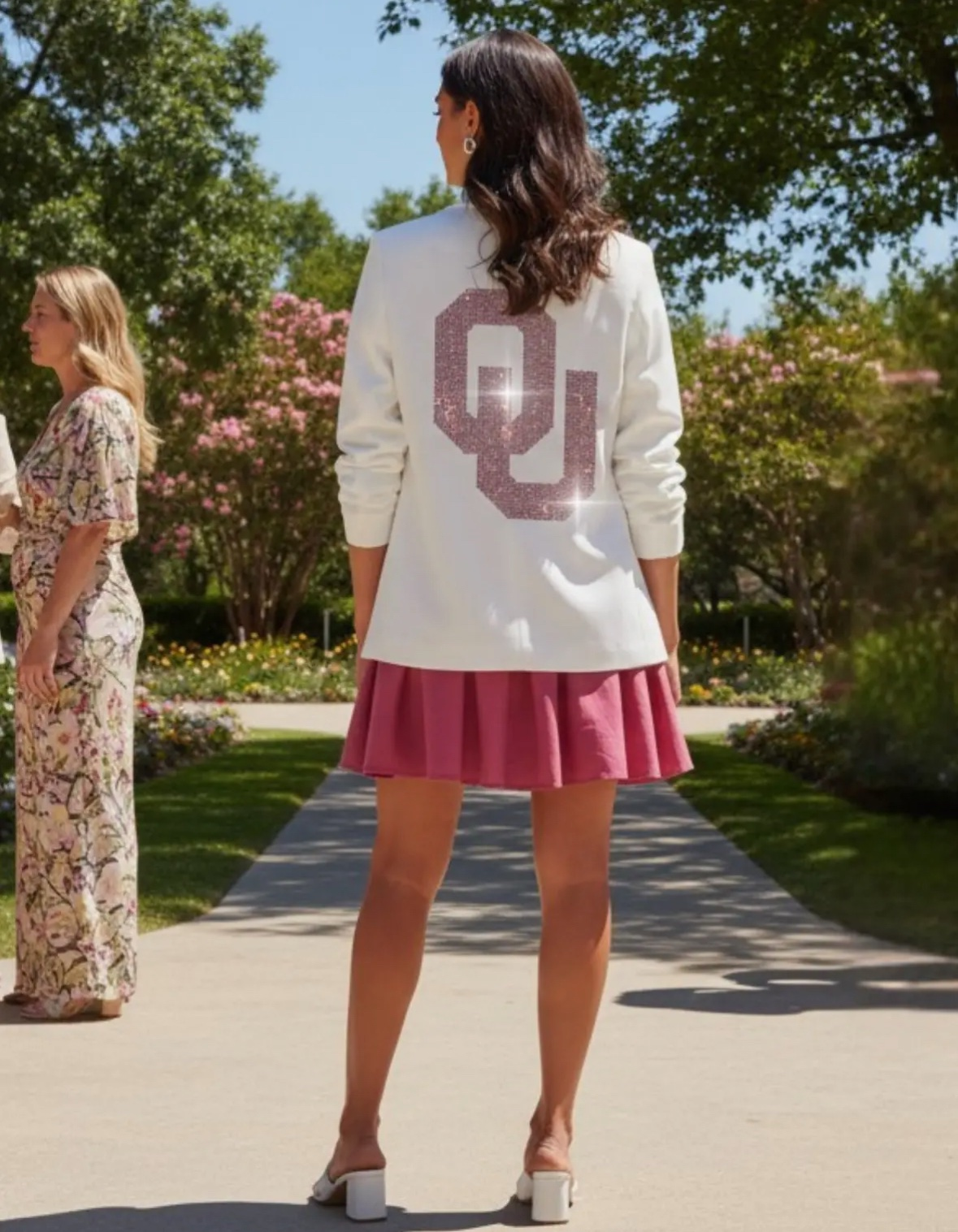 Previous Product Next Product OU Rhinestone Ruched Blazer $136.00 Size Choose an optionLargeMediumSmallXlargeClear OU Rhinestone Ruched Blazer quantity Add to cart SKU: N/A Categories: Jackets & Coats, Sports Description Additional information Description Shipping ETA 2 Weeks Additional information Size Large, Medium, Small, Xlarge Opens in a new window Tweet This Product Opens in a new window Share on Facebook Opens in a new window Mail This Product Related products Quick View Quick View Sports, Two Piece SetsOklahoma City Thunder Two Piece Pants Set $59.00 Select options This product has multiple variants. The options may be chosen on the product page Quick View Quick View Graphic Tees & Sweatshirts, SportsPokes Oklahoma State Crewneck Sweatshirt $58.00 Select options This product has multiple variants. The options may be chosen on the product page Quick View Quick View Sports, Two Piece SetsOklahoma City Two Piece Shorts Set $58.00 Select options This product has multiple variants. The options may be chosen on the product page Quick View Quick View Graphic Tees & Sweatshirts, SportsOklahoma City Thunder Mock Neck Crewneck Sweatshirt $55.00 Select options This product has multiple variants. The options may be chosen on the product page